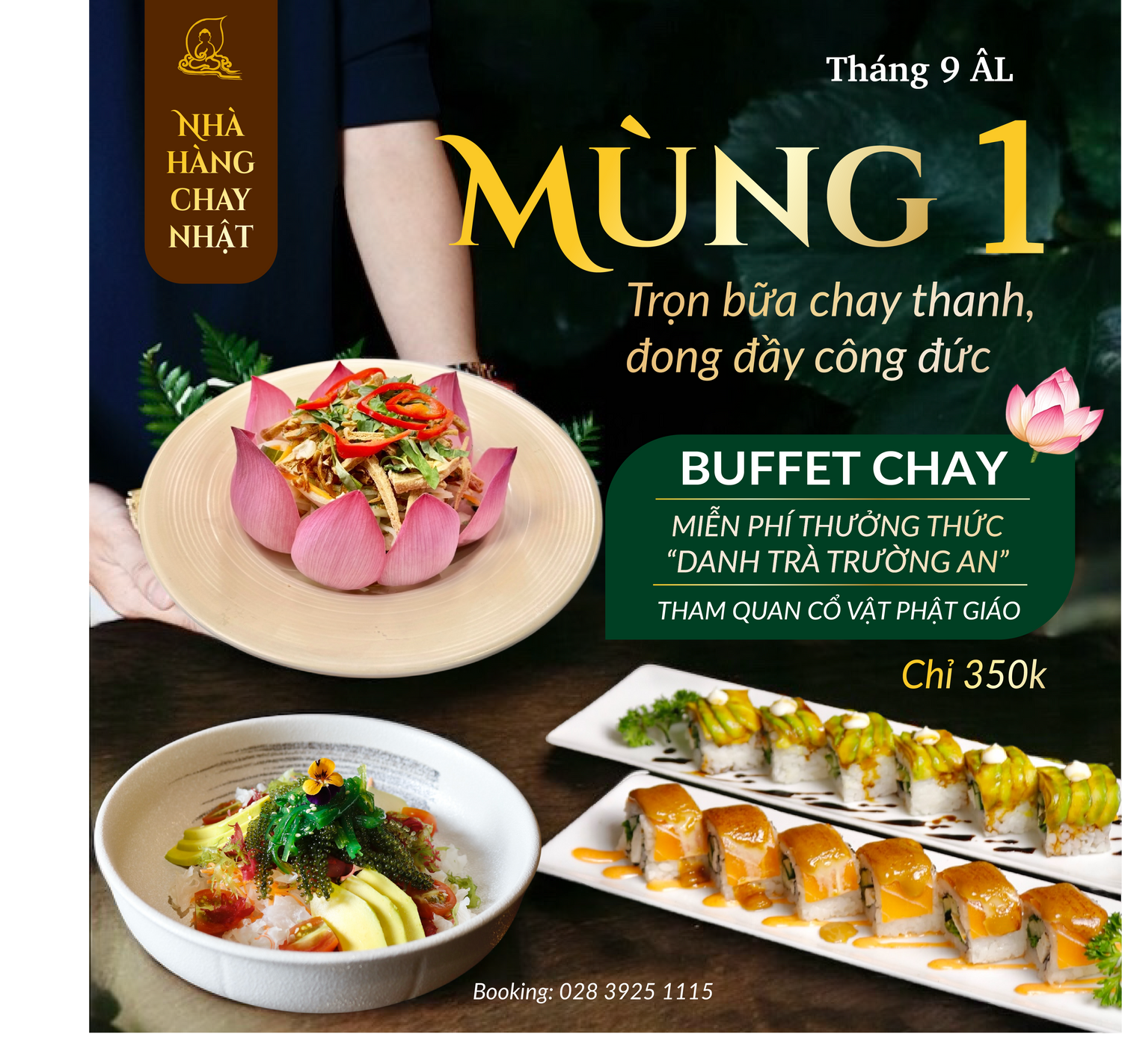 Thưởng thức Buffet chay Nhật Bản sáng tạo với hơn 50 món chỉ với 350k, kết hợp thưởng trà đạo và tham quan không gian cổ vật Phật Giáo.