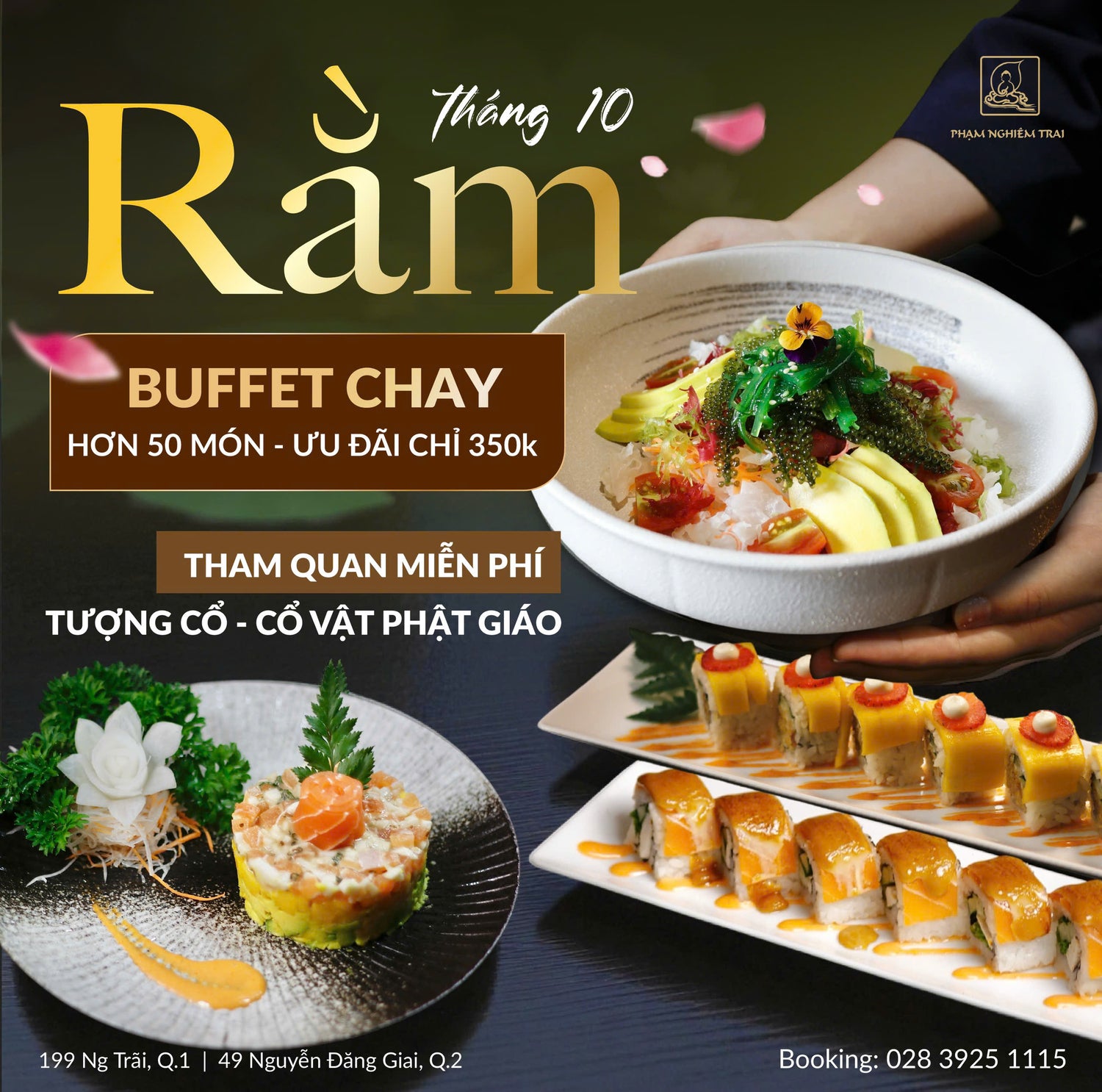Thưởng thức Buffet chay Nhật Bản sáng tạo với hơn 50 món chỉ với 350k, kết hợp thưởng trà đạo và tham quan không gian cổ vật Phật Giáo.