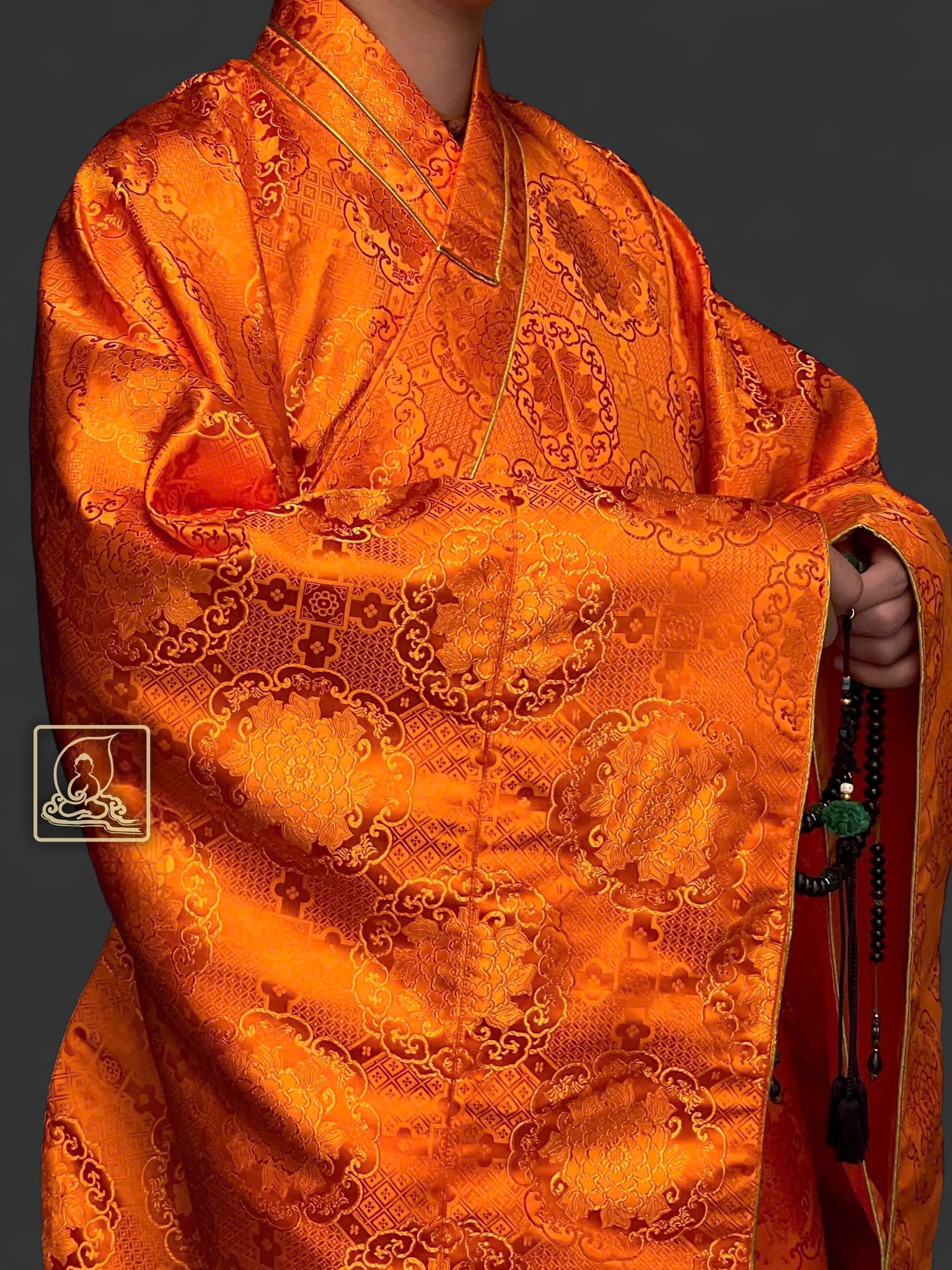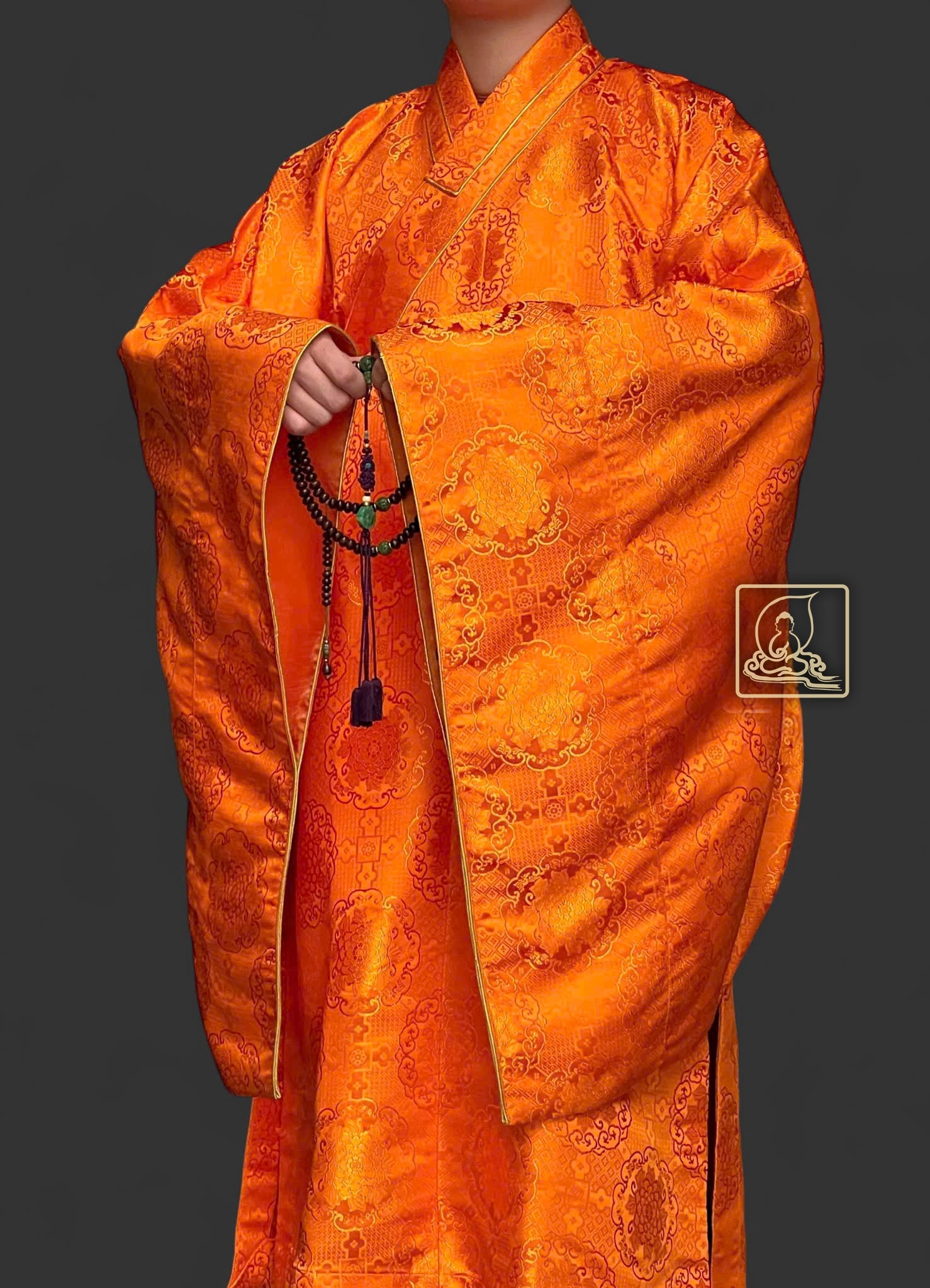 Áo hậu được may theo form dáng chuẩn, cổ áo thẳng ngay tâm giữa. may tỉ mỉ từ chất liệu gấm Tô Châu dệt họa tiết hoa văn mandala, mang sắc màu cam. Cổ áo được viền vàng nhằm giúp nổi bật phần cổ. Áo hậu có thể phối hợp cùng với những pháp y mang màu sắc khác tạo thành bộ y hậu hoàn chỉnh giúp trang nghiêm Tăng tướng của chư Tôn Đức.
