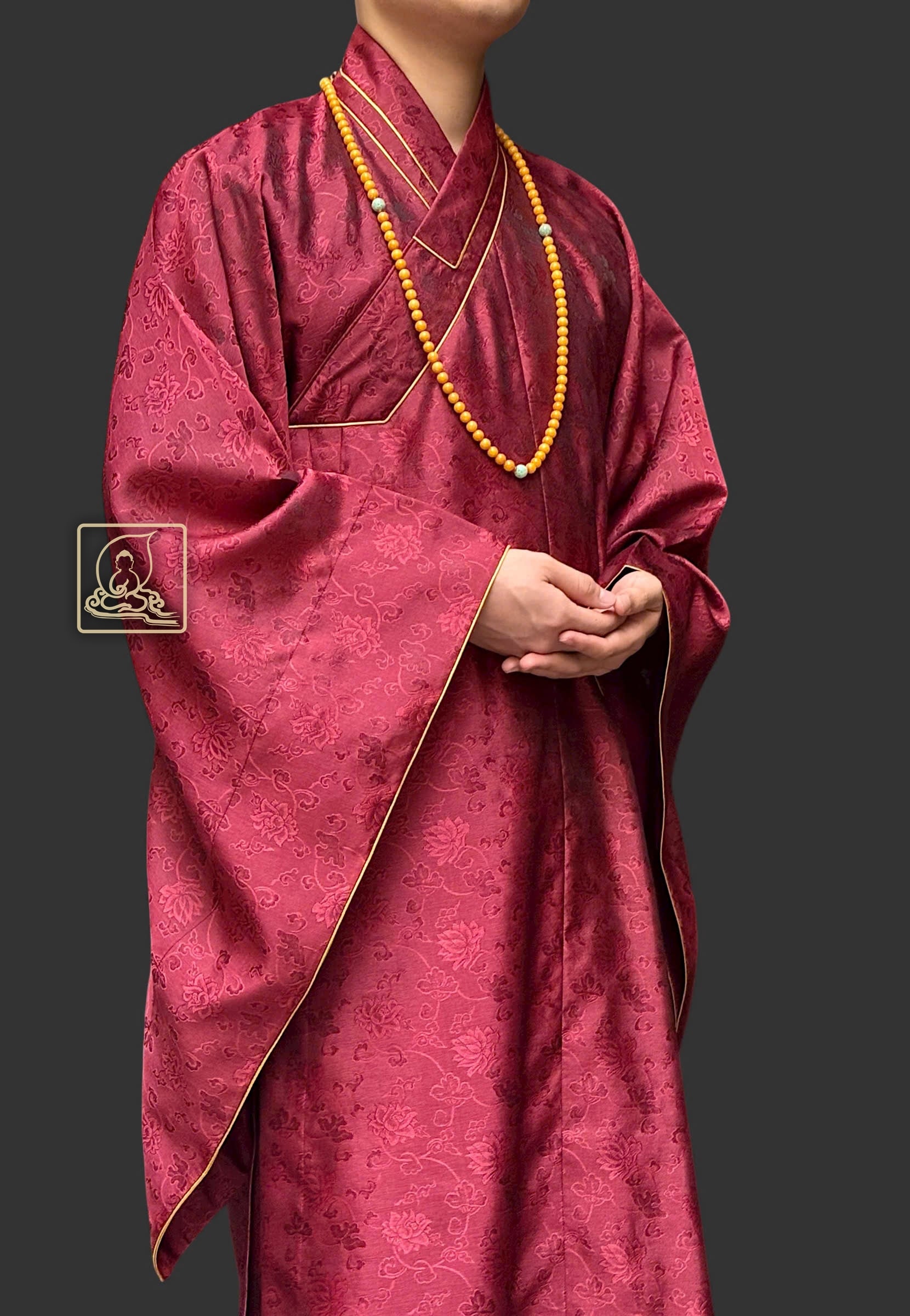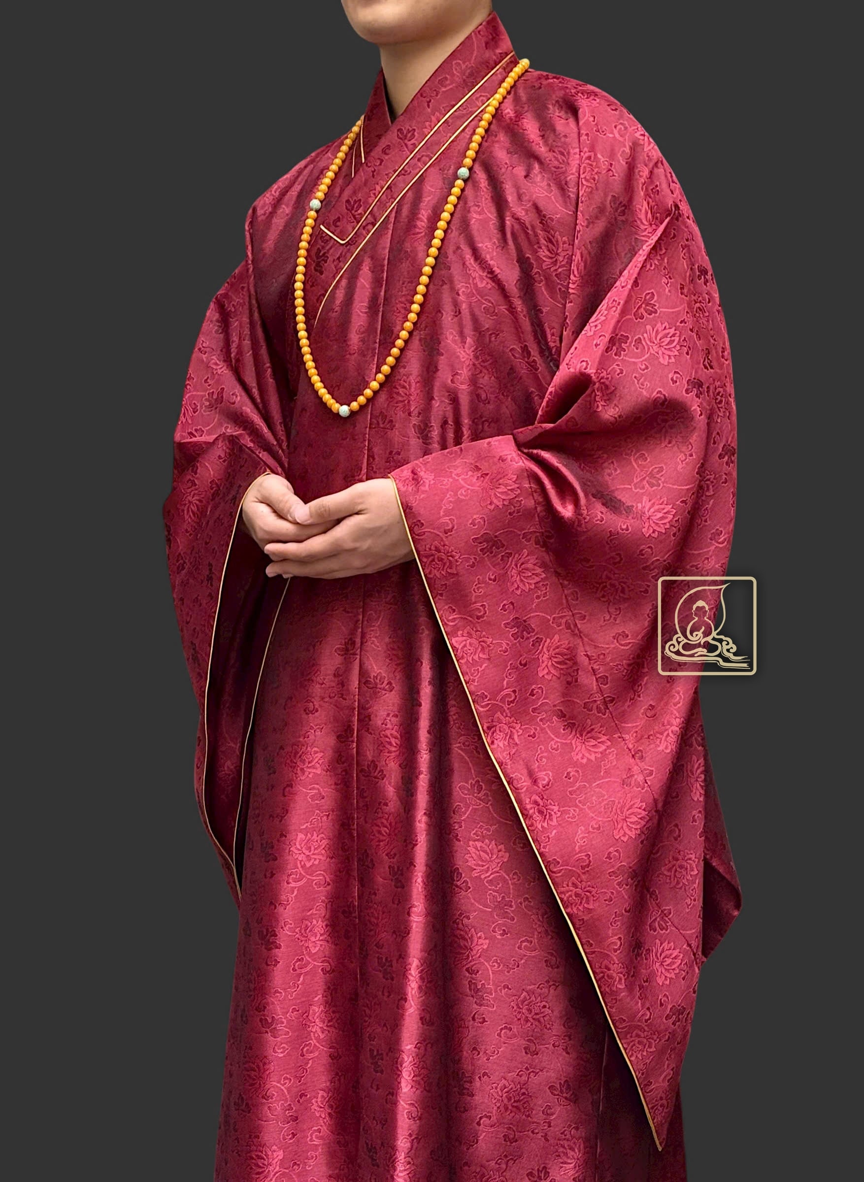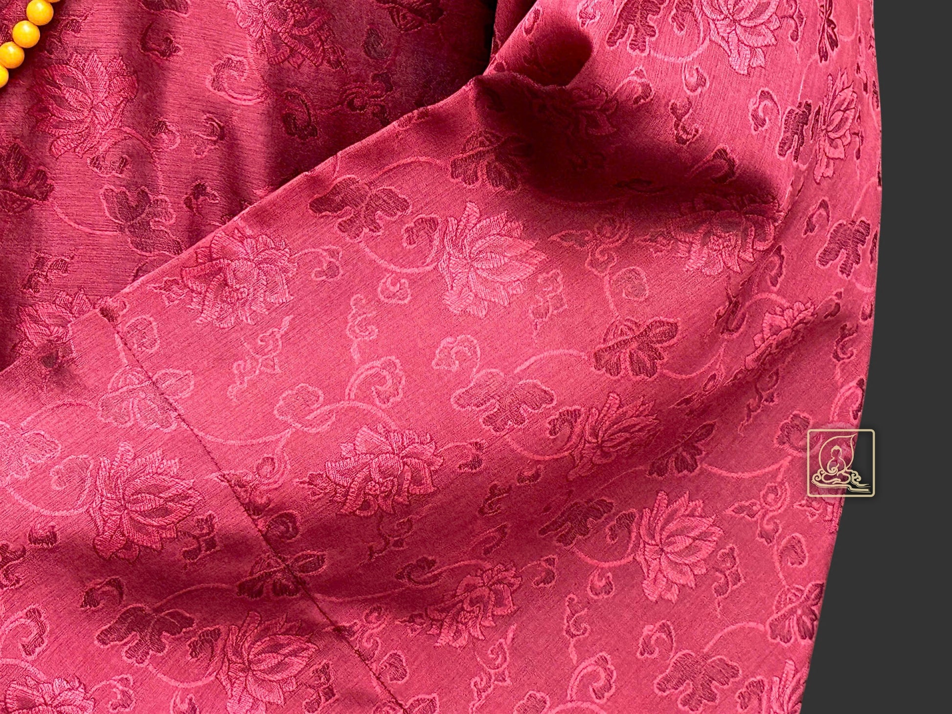 Áo hậu chư Tăng được may từ chất liệu sa Hàn cao cấp mang đến vẻ trang nghiêm mà vẫn tinh tế trong từng chi tiết. Thân áo được dệt họa tiết hoa sen ẩn tạo nên chiều sâu thẩm mỹ nhẹ nhàng nhưng đầy ý nghĩa.