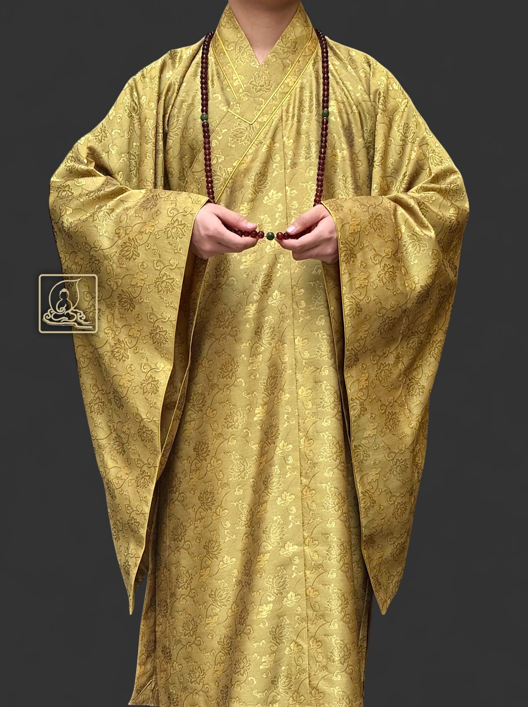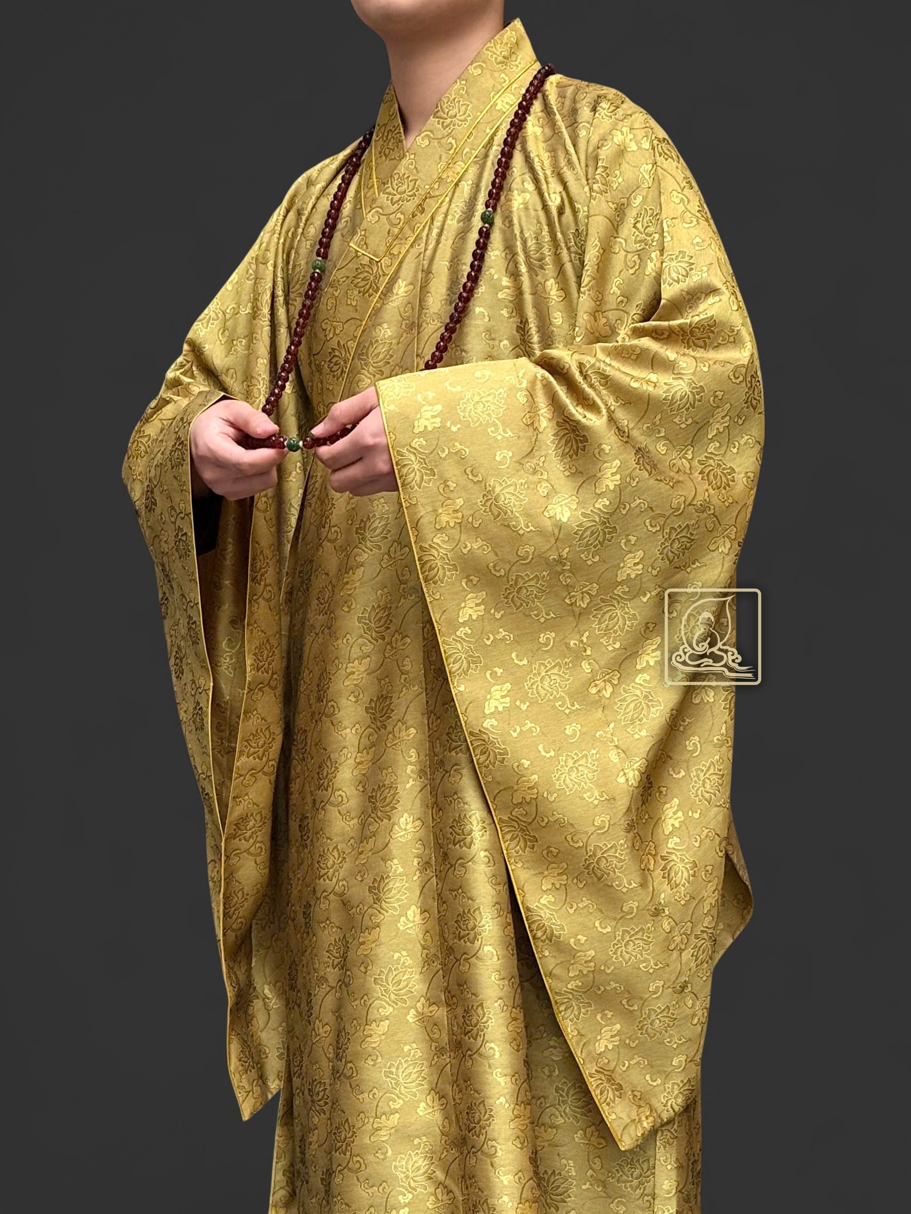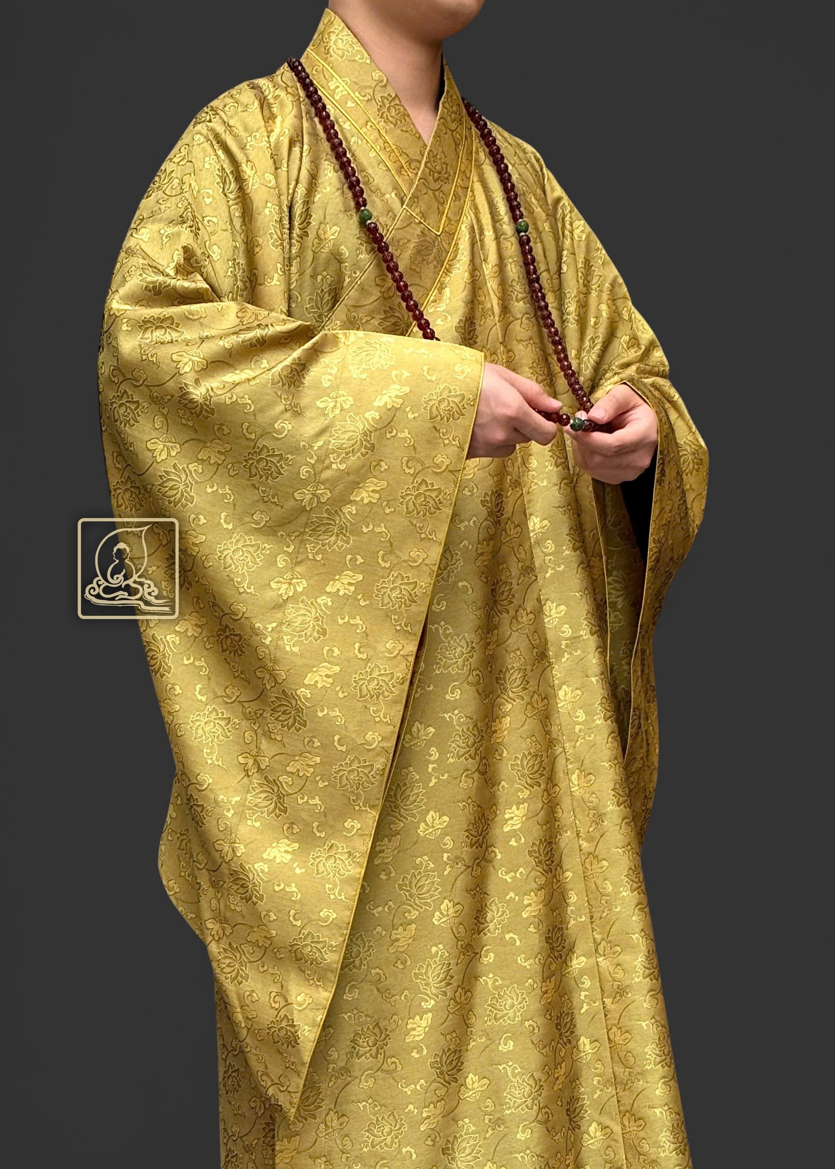 Áo hậu được may theo form dáng chuẩn, cổ áo thẳng ngay tâm giữa. may tỉ mỉ từ chất liệu sa dệt từ sợi tự nhiên có họa tiết hoa sen, mang màu sắc vàng rêu. Cổ áo được viền chỉ vàng nhằm giúp nổi bật phần cổ. Áo hậu có thể phối hợp cùng với những pháp y mang màu sắc khác tạo thành bộ y hậu hoàn chỉnh giúp trang nghiêm Tăng tướng của chư Tôn Đức.