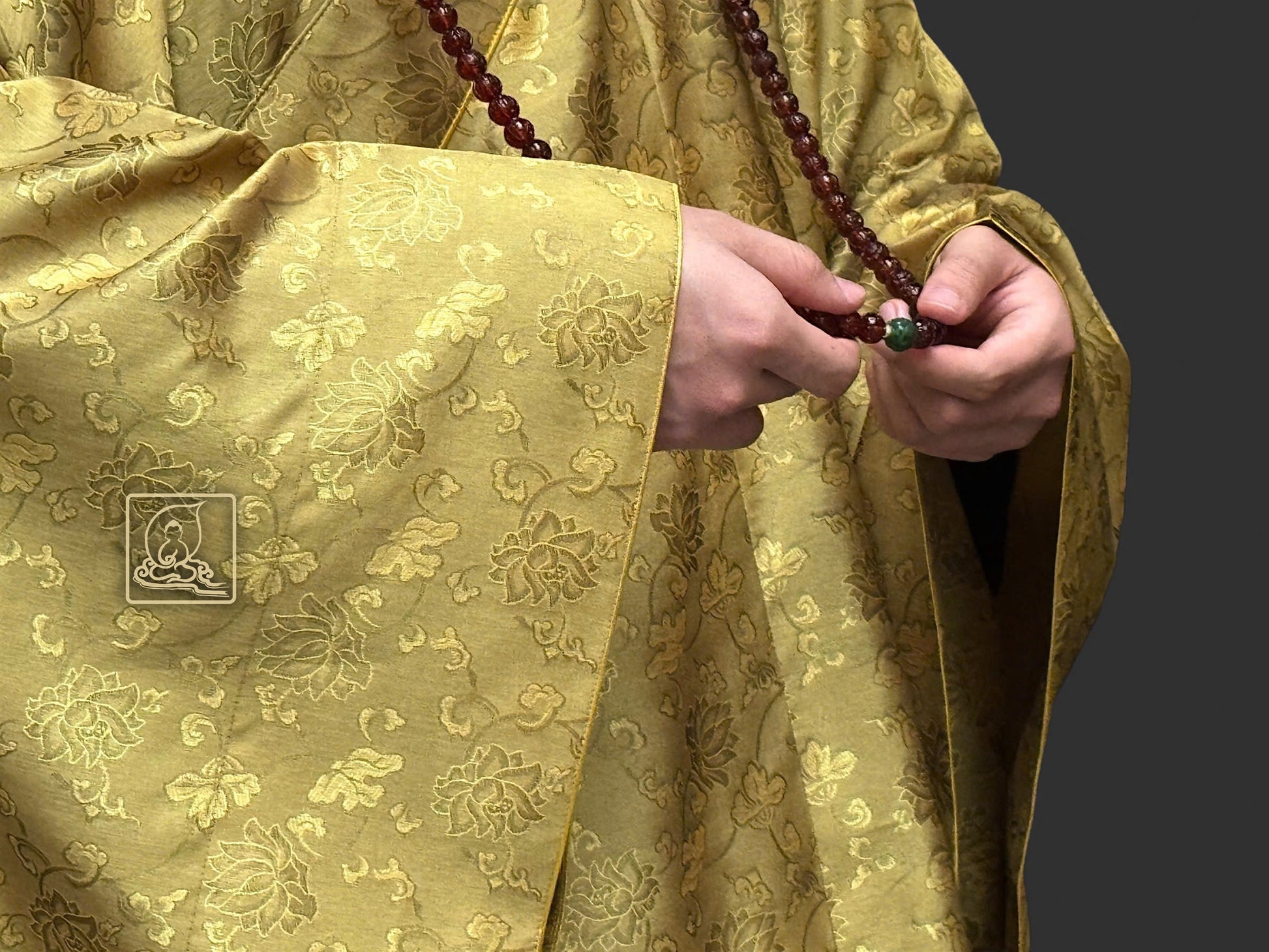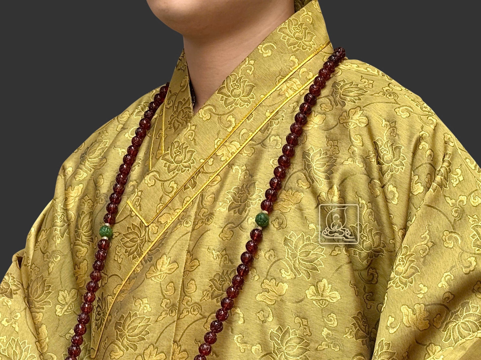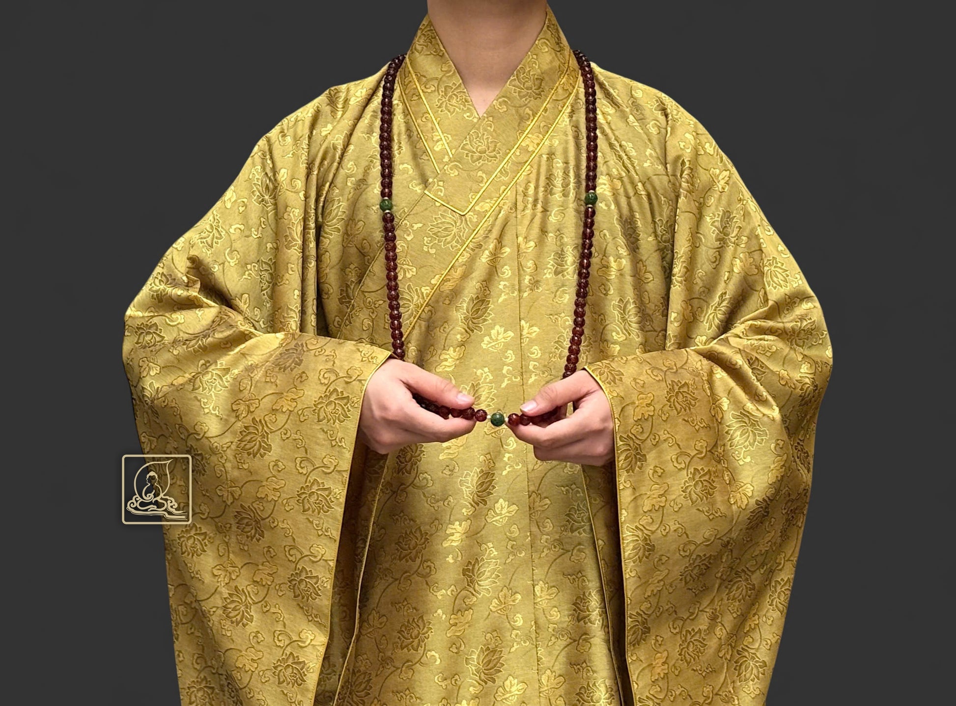 Áo hậu được may theo form dáng chuẩn, cổ áo thẳng ngay tâm giữa. may tỉ mỉ từ chất liệu sa dệt từ sợi tự nhiên có họa tiết hoa sen, mang màu sắc vàng rêu. Cổ áo được viền chỉ vàng nhằm giúp nổi bật phần cổ. Áo hậu có thể phối hợp cùng với những pháp y mang màu sắc khác tạo thành bộ y hậu hoàn chỉnh giúp trang nghiêm Tăng tướng của chư Tôn Đức.