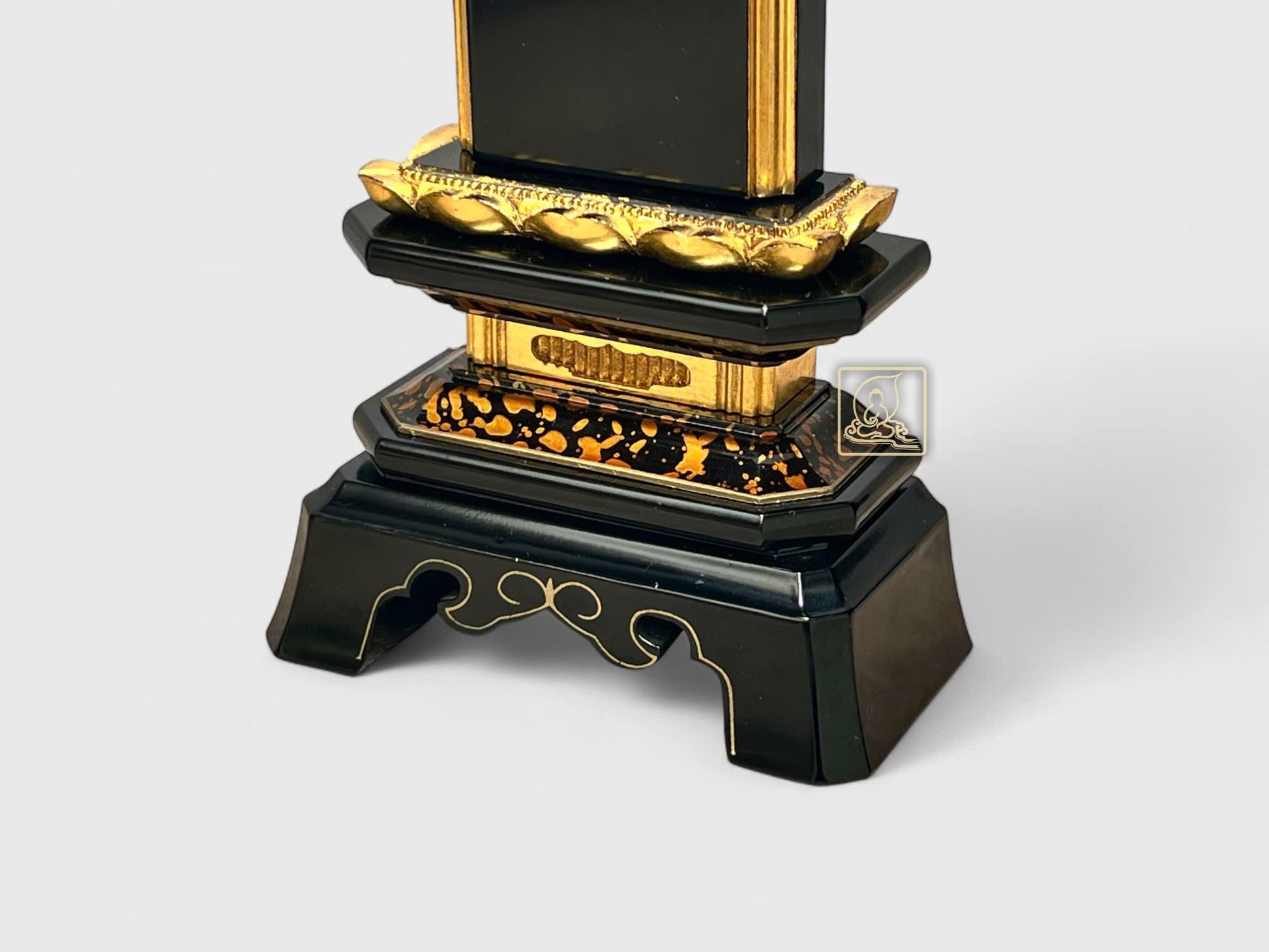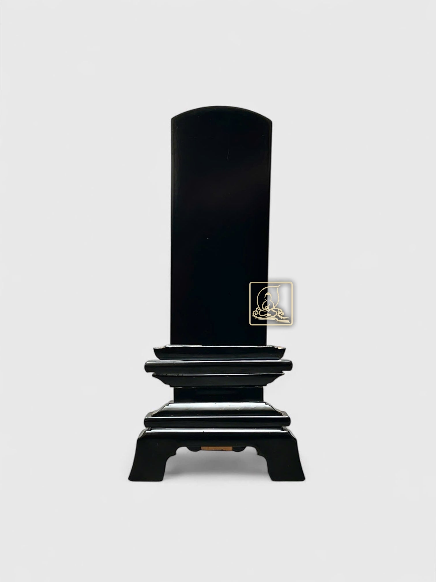At Phạm Nghiêm Trai, each tablet is meticulously handcrafted by skilled Japanese artisans from high-quality wood. The surface is coated with a protective lacquer layer, ensuring durability over time. Additionally, the edges are accented with 18K gold, highlighting the tablet’s elegance. The base features intricately carved lotus motifs, petal by petal, combined with other decorative patterns, creating a harmonious and solemn design.