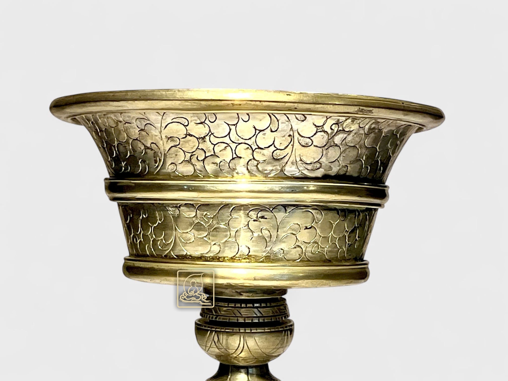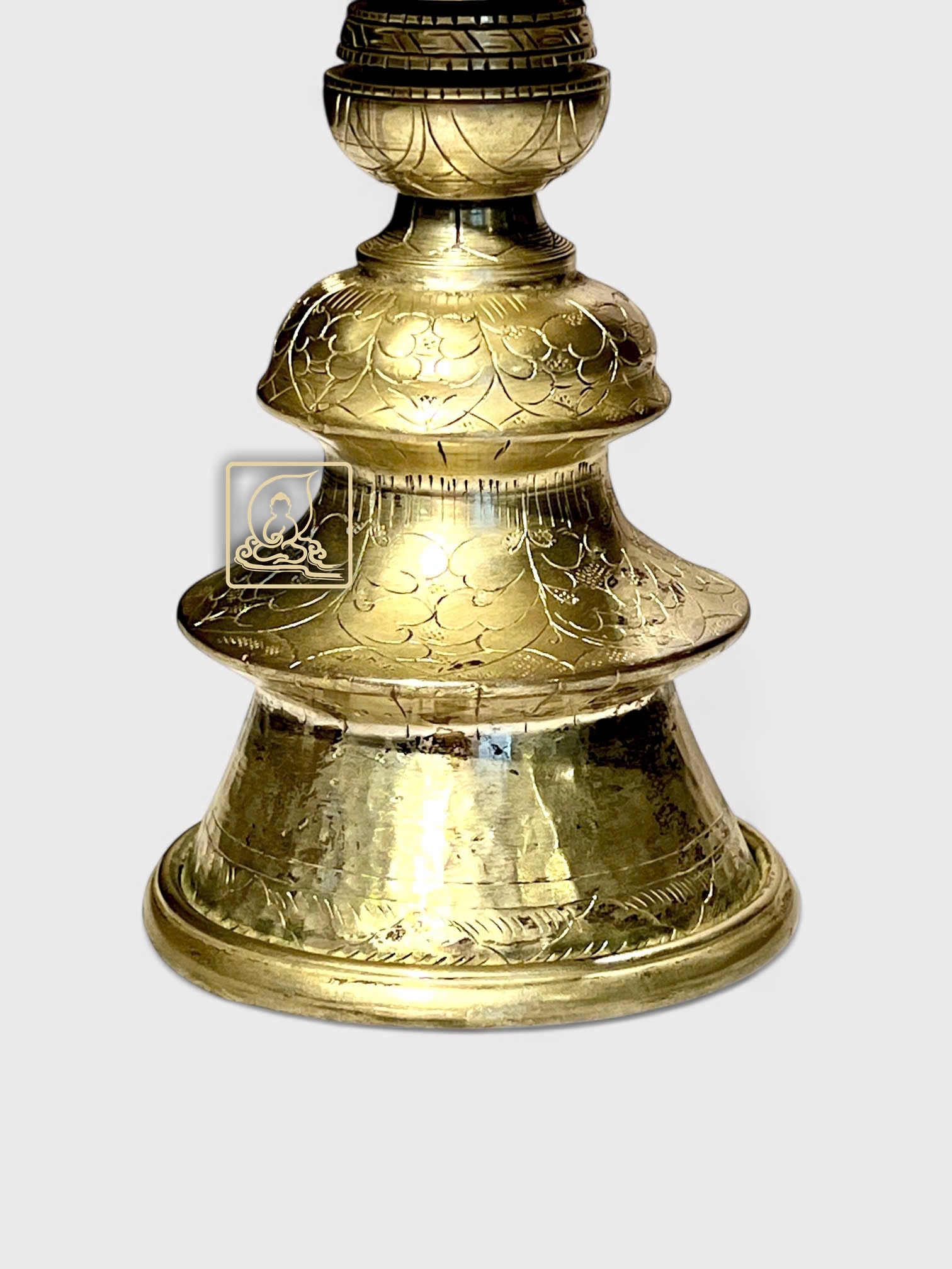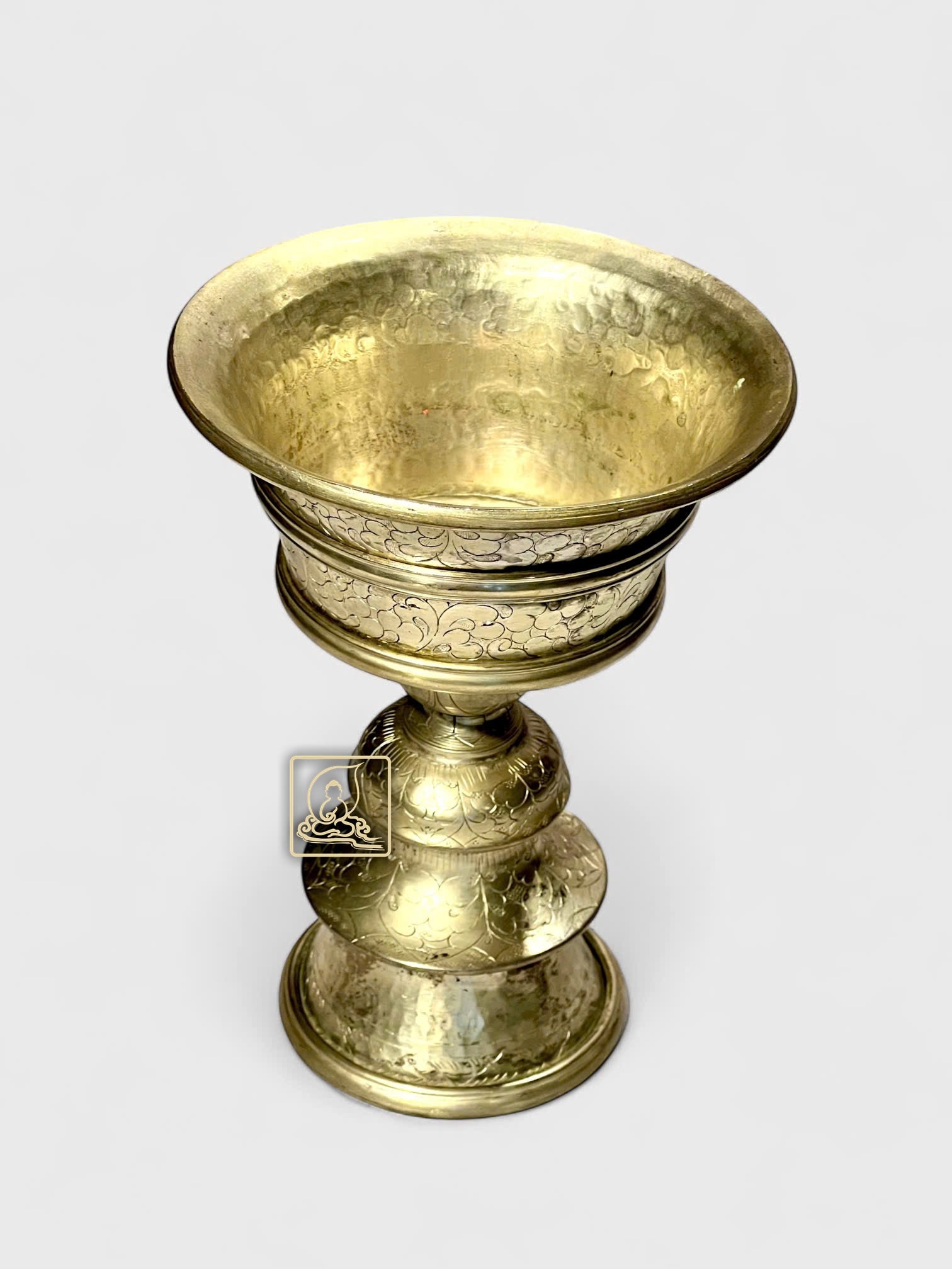 A pair of candle holders are used to hold candles or oil offerings for the Three Jewels. In Buddhism, offering light is a practice to dispel the darkness of ignorance, illuminating clarity and wisdom. By making such offerings, one aspires for the radiant light to shine across realms, ease the suffering of sentient beings, and cultivate the noble wisdom to understand that true happiness arises from wholesome body, speech, and mind. Moreover, this offering invites the hidden light of Buddha-nature to arise within all beings, dispelling the darkness of ignorance and removing the obscurations caused by wrong views.