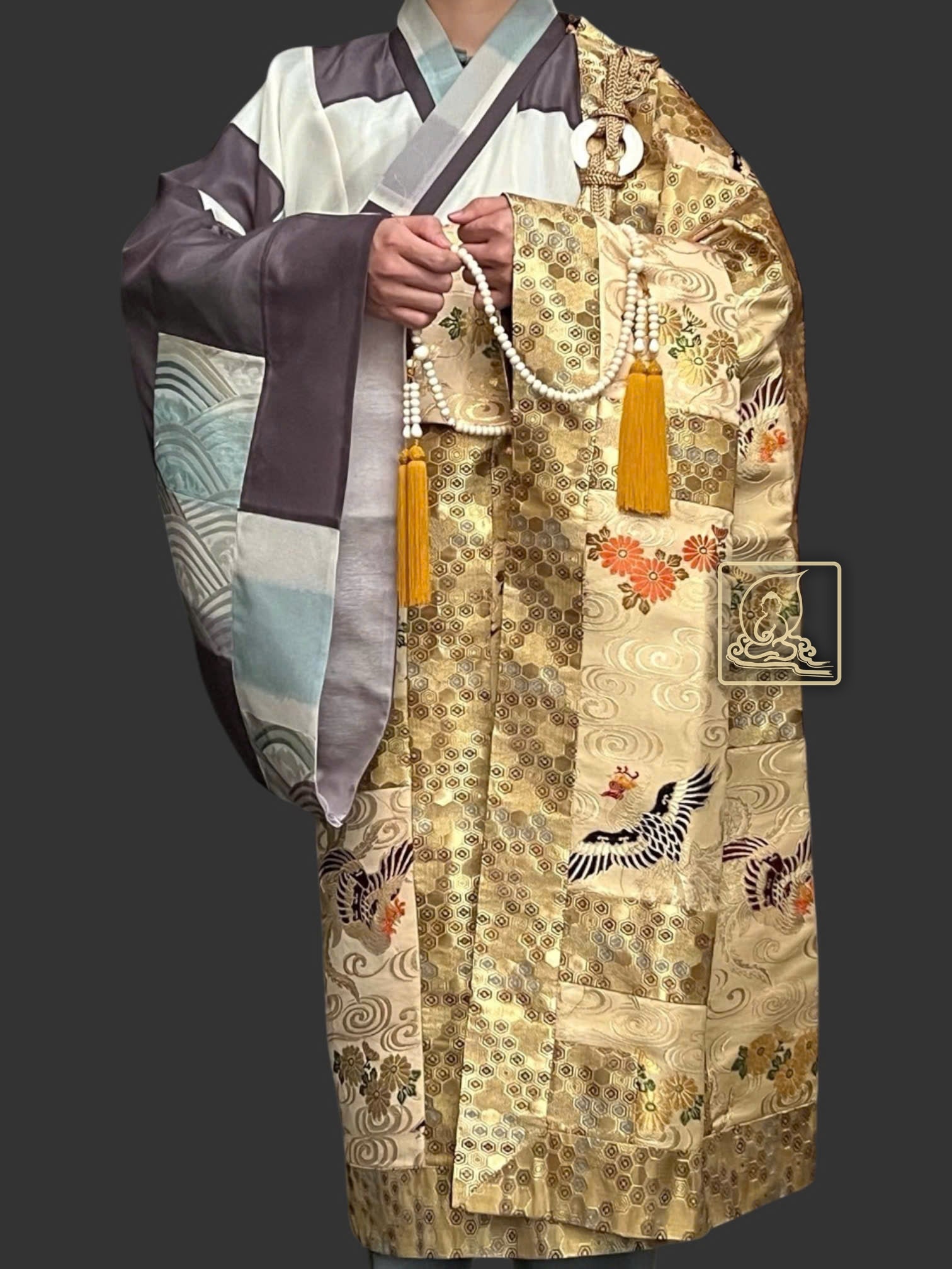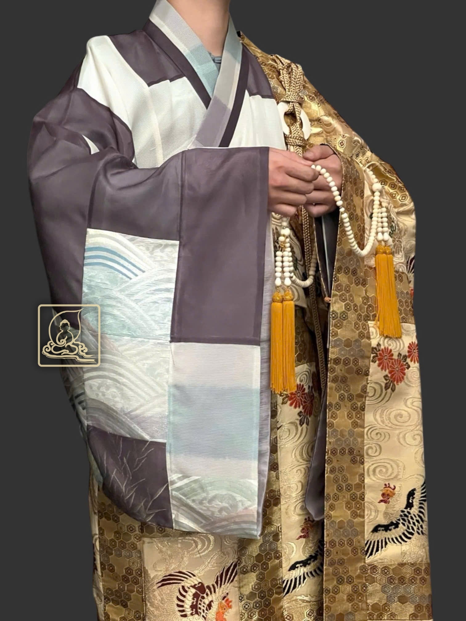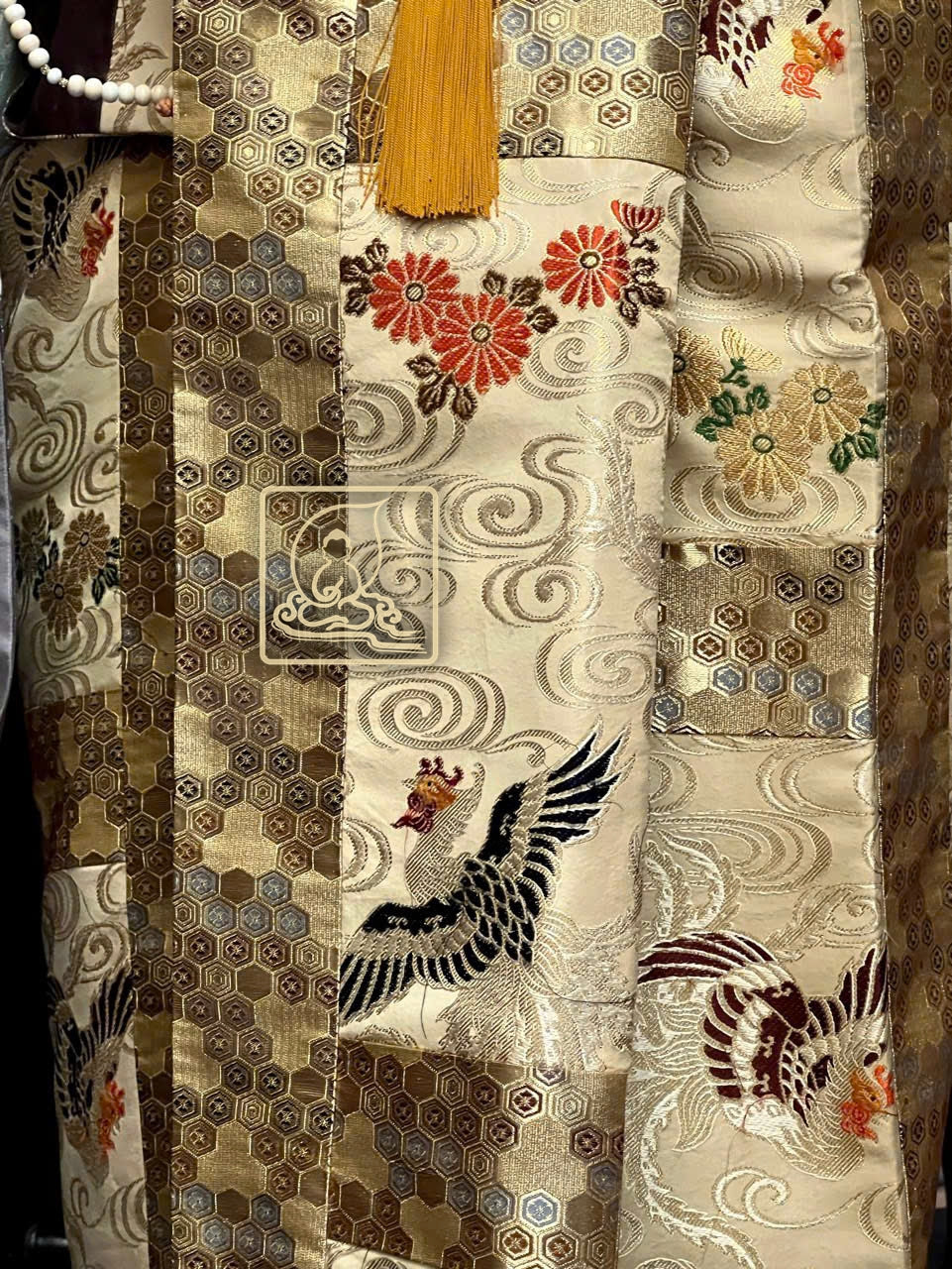 Với họa tiết hoa văn Phượng đặc sắc làm ruộng y được cẩn chế từ gấm Nhật dệt thủ công kết hợp sợi chỉ vàng, phối chung với điều y dệt họa tiết hoa văn mandala, kết hợp với áo hậu theo kiểu bá nạp từ chất vải sa Nhật, thể hiện nét đẹp trong thiền môn và phước báu của bậc chân tu trên con đường phổ hoá chúng sanh . Pháp y được may theo phong cách y xưa vào thời Đường truyền thống, vốn đã bị mai một ở một số quốc gia, ngoại trừ Việt Nam và Nhật Bản. Với bần bà Nhật kiểu thắt dây bệt từ dây tơ đặc sắc riêng biệt