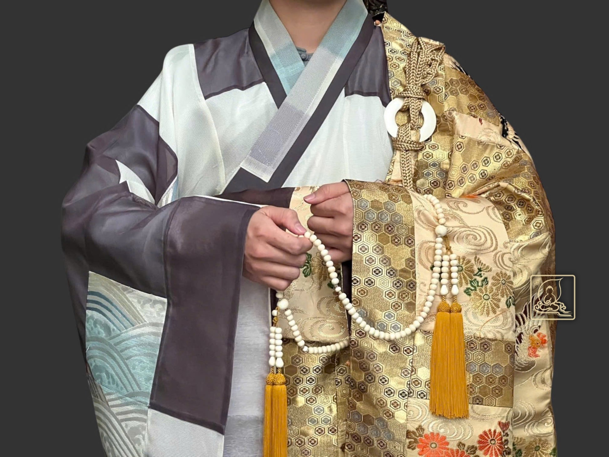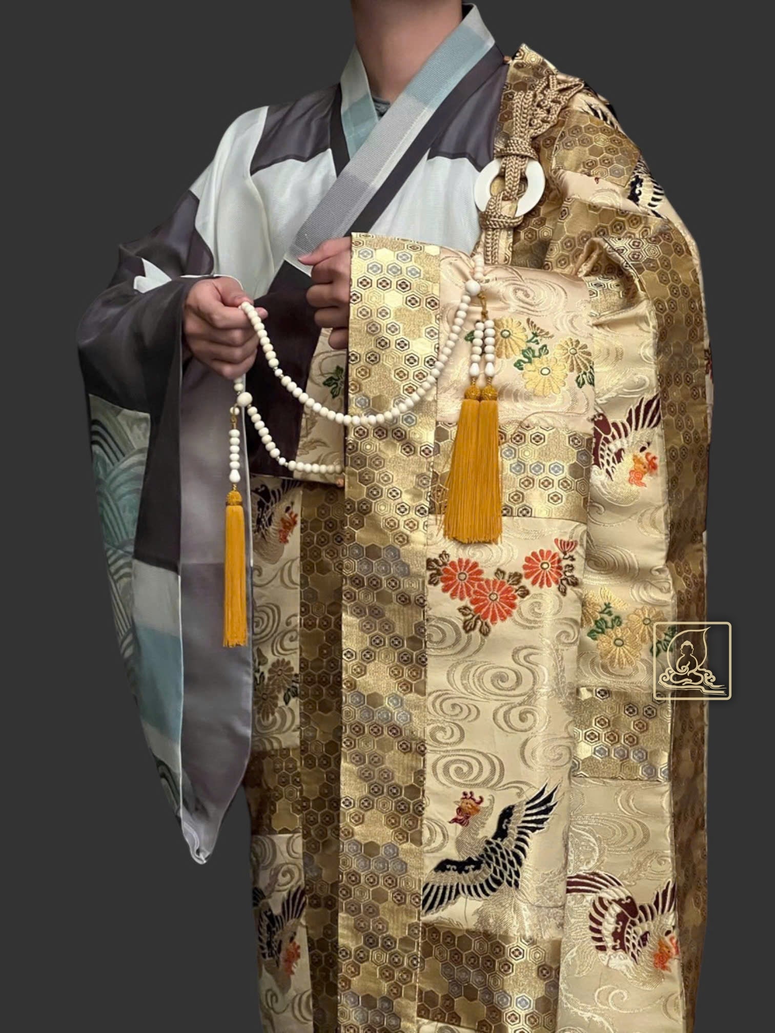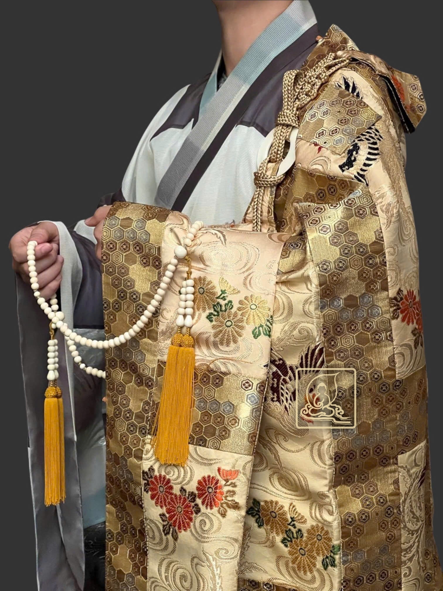 Với họa tiết hoa văn Phượng đặc sắc làm ruộng y được cẩn chế từ gấm Nhật dệt thủ công kết hợp sợi chỉ vàng, phối chung với điều y dệt họa tiết hoa văn mandala, kết hợp với áo hậu theo kiểu bá nạp từ chất vải sa Nhật, thể hiện nét đẹp trong thiền môn và phước báu của bậc chân tu trên con đường phổ hoá chúng sanh . Pháp y được may theo phong cách y xưa vào thời Đường truyền thống, vốn đã bị mai một ở một số quốc gia, ngoại trừ Việt Nam và Nhật Bản. Với bần bà Nhật kiểu thắt dây bệt từ dây tơ đặc sắc riêng biệt