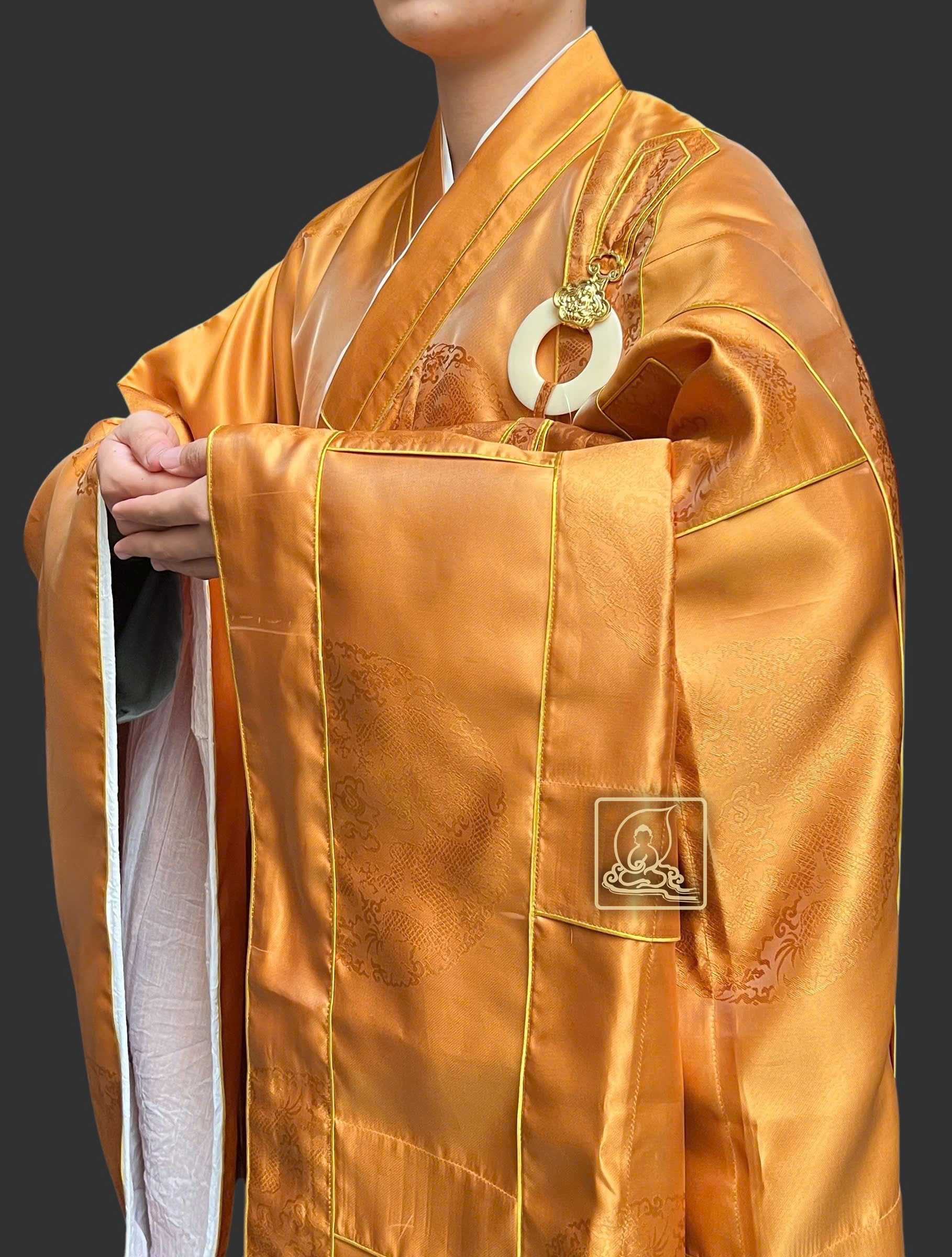 Sa là chất liệu nhẹ và có hoa văn chìm trên từng xớ vải. Tuy nhẹ nhưng không rũ, mỏng nhưng không nhìn xuyên thấu. Khi mặc lên người sẽ có độ phồng, không bó sát người, làm cho vị chủ lễ trang nghiêm hơn. Màu sắc đa dạng, phù hợp với nhiều buổi lễ như Khai Đàn, Ngọ Cúng, pháp hội Dược Sư (sa màu xanh dương)… Màu vàng tươi và vàng đồng có thể dùng cho những vị tôn túc hành lễ thường nhật.