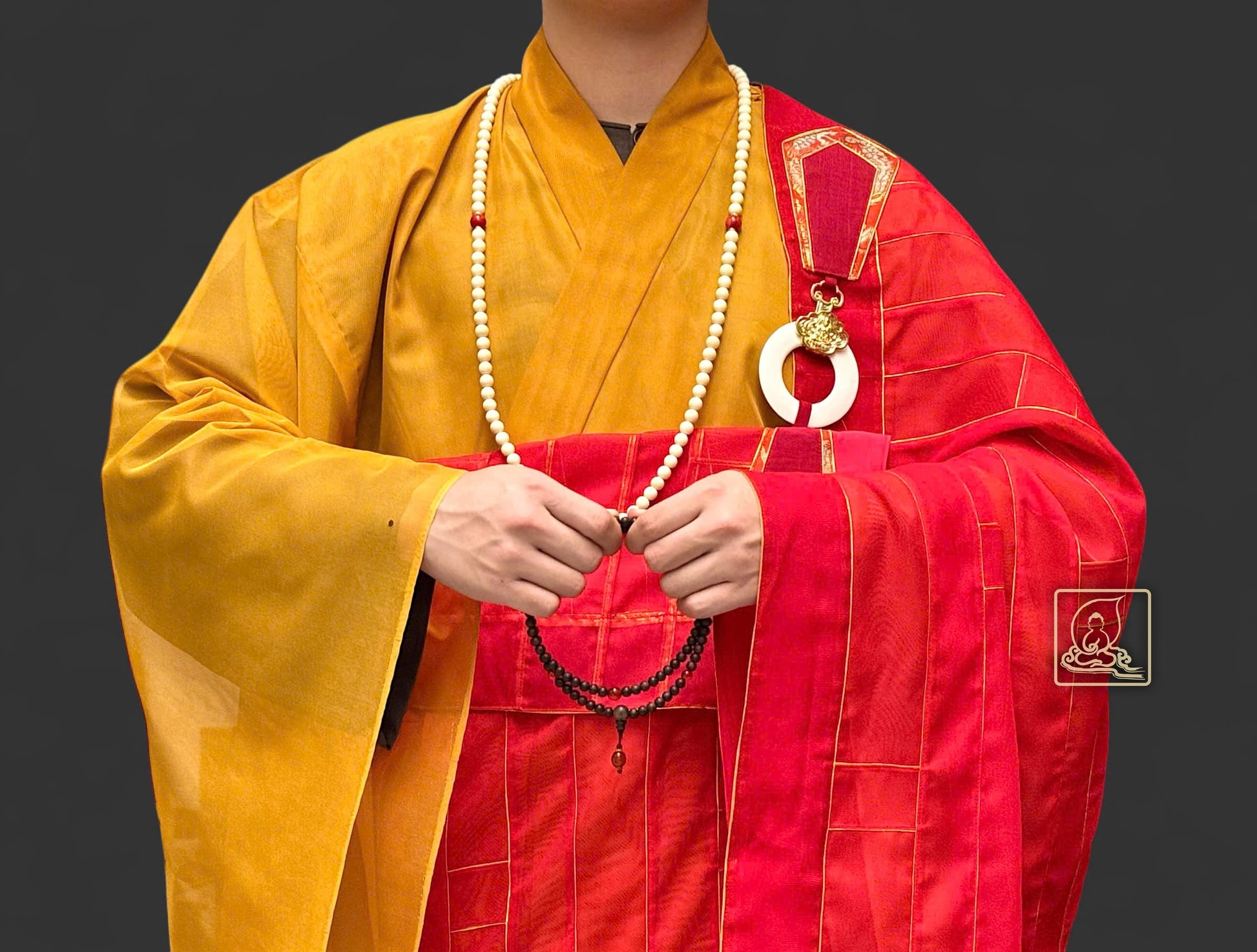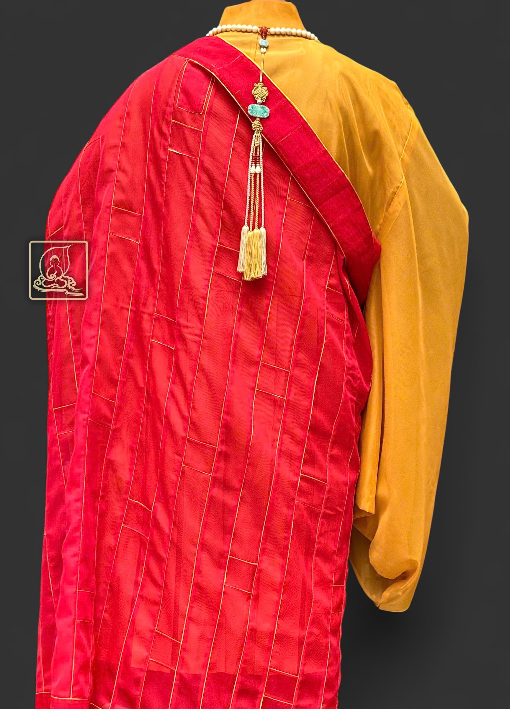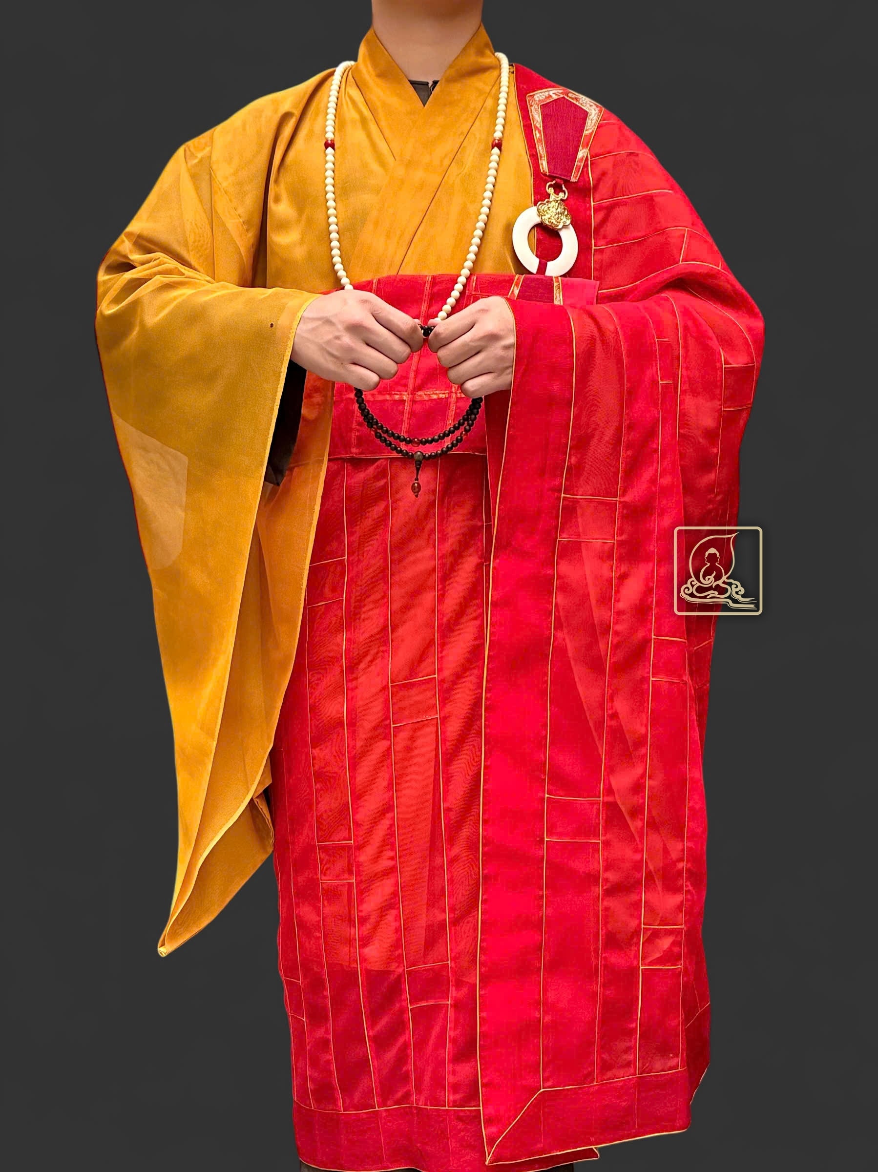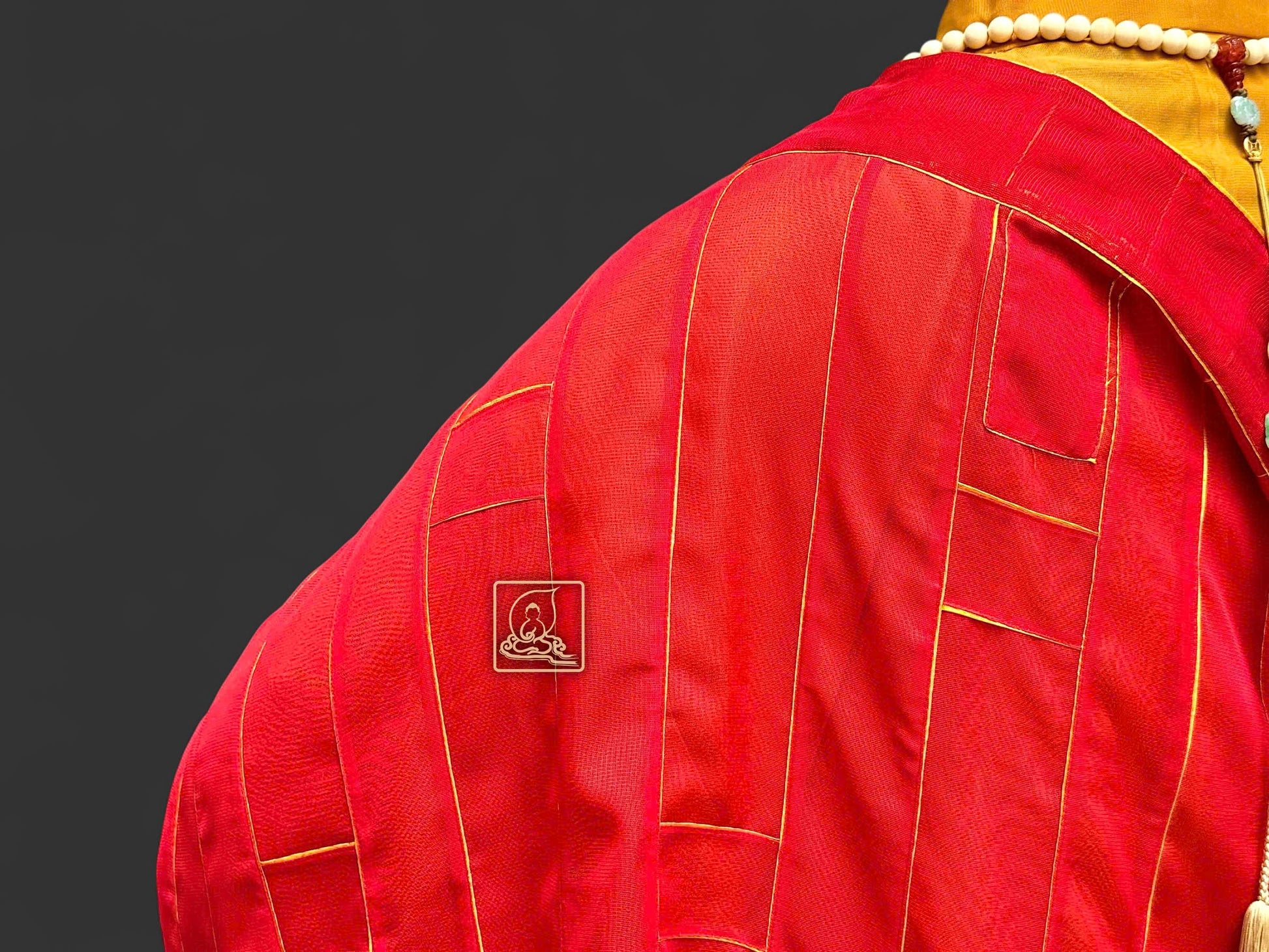 Phần viền chỉ vàng và bần bà móc y đồng tạo điểm nhấn tinh tế, làm nổi bật nét trang nghiêm của chư Tăng khi khoác y hành lễ. Khi phối cùng áo hậu sa Nhật màu vàng, pháp y ca sa càng toát lên vẻ uy nghi, thanh thoát.