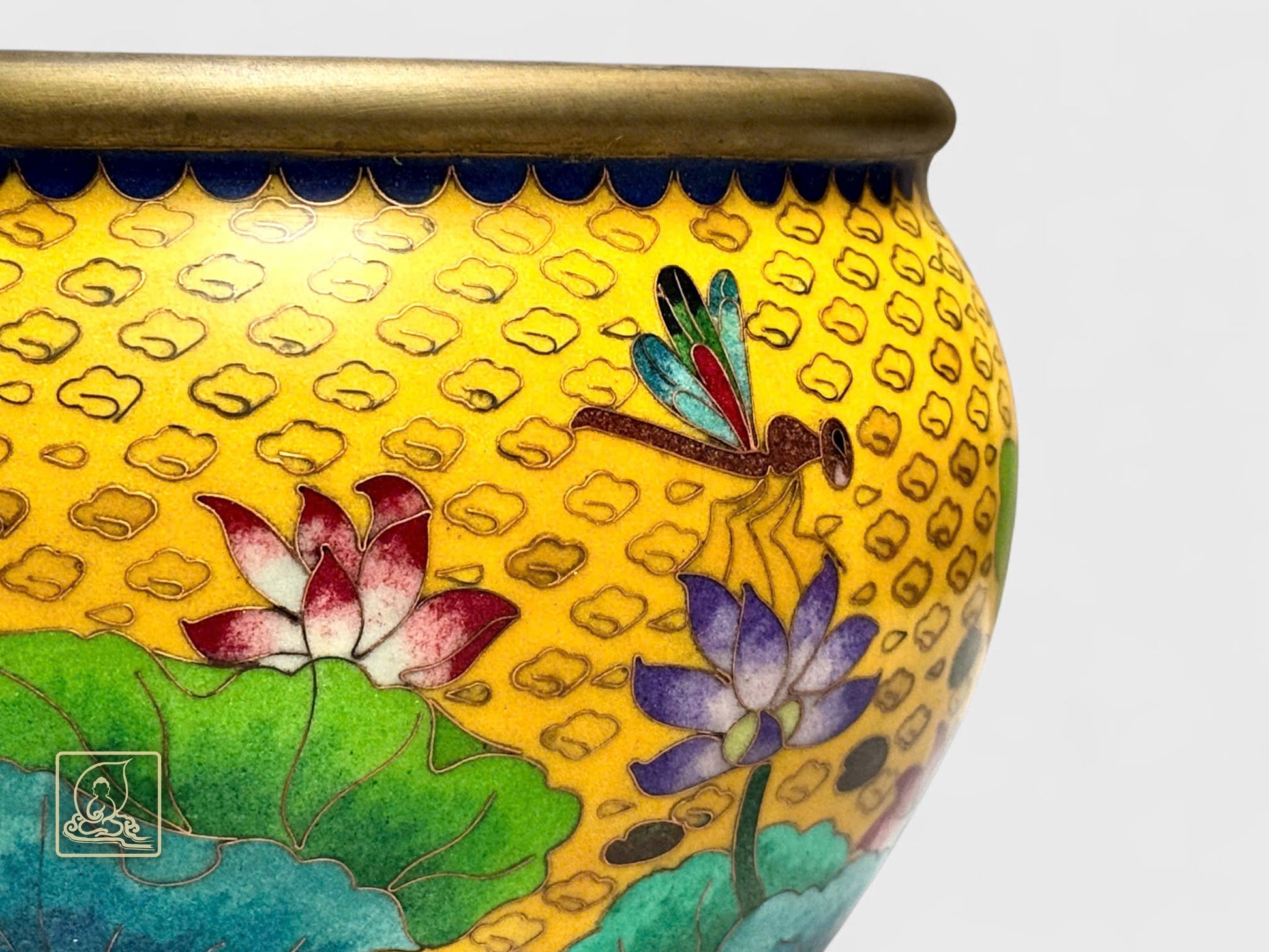 The enameled bronze technique involves forming intricate patterns using fine copper filaments attached to a bronze base. These sections are then filled with multi-colored enamel, fired multiple times in a kiln until the enamel reaches perfect thickness and sheen. Finally, the surface is polished and the copper lines gilded with gold, resulting in a flawless, radiant work of art.