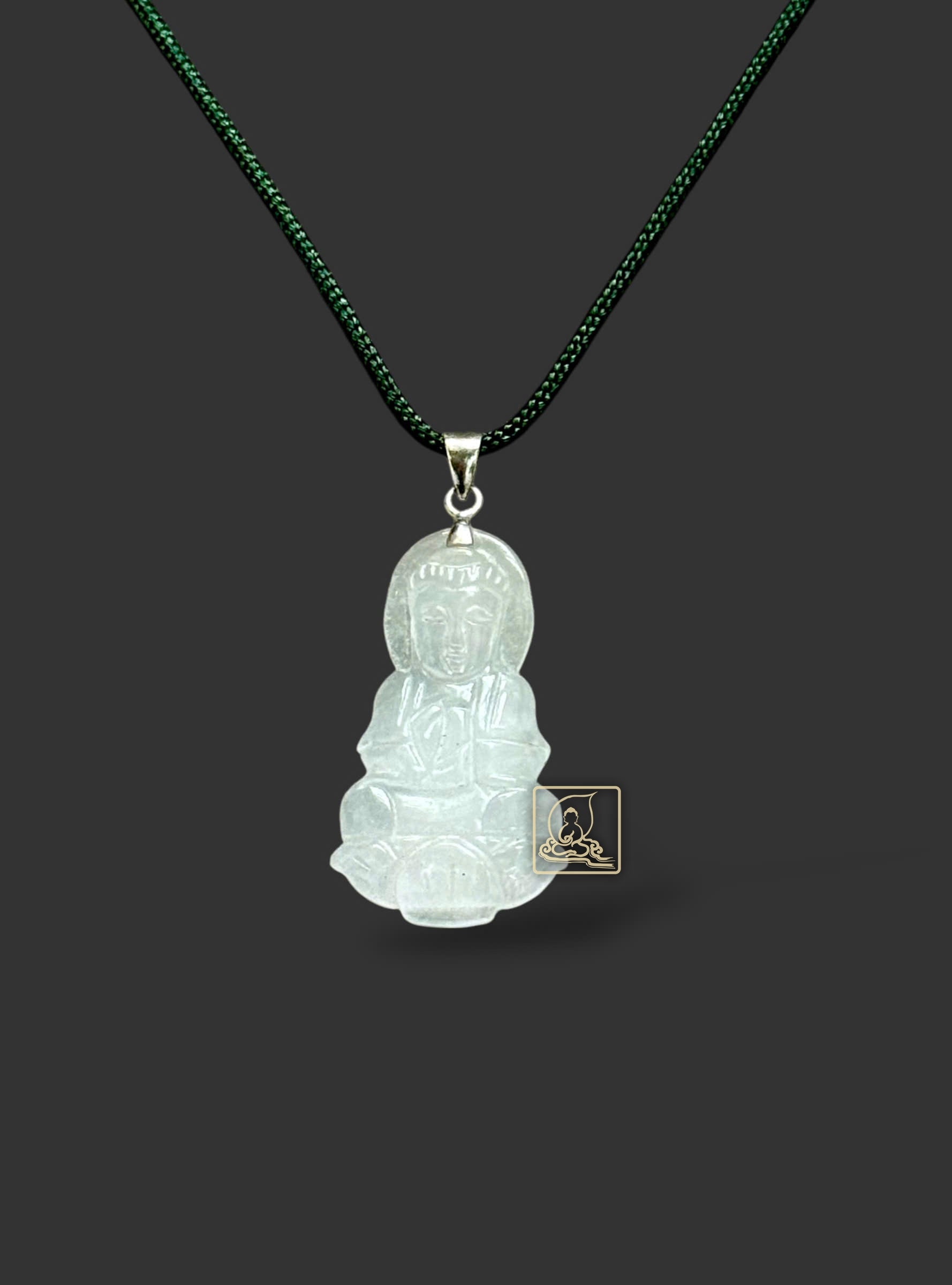 Mặt dây đeo cổ được chạm khắc hình tướng Đức Bồ Tát Quán Âm từ chất liệu ngọc cẩm thạch. Bồ Tát Quán Thế Âm là vị Bồ Tát đại từ bi luôn che chở và cứu giúp chúng sanh lúc khổ nạn. Khi đeo hình tướng đức Bồ Tát trên thân giúp nhắc nhở luôn nghĩ tưởng đến Ngài và cũng nhận được sự gia trì từ Bồ Tát để bảo hộ thân tâm.