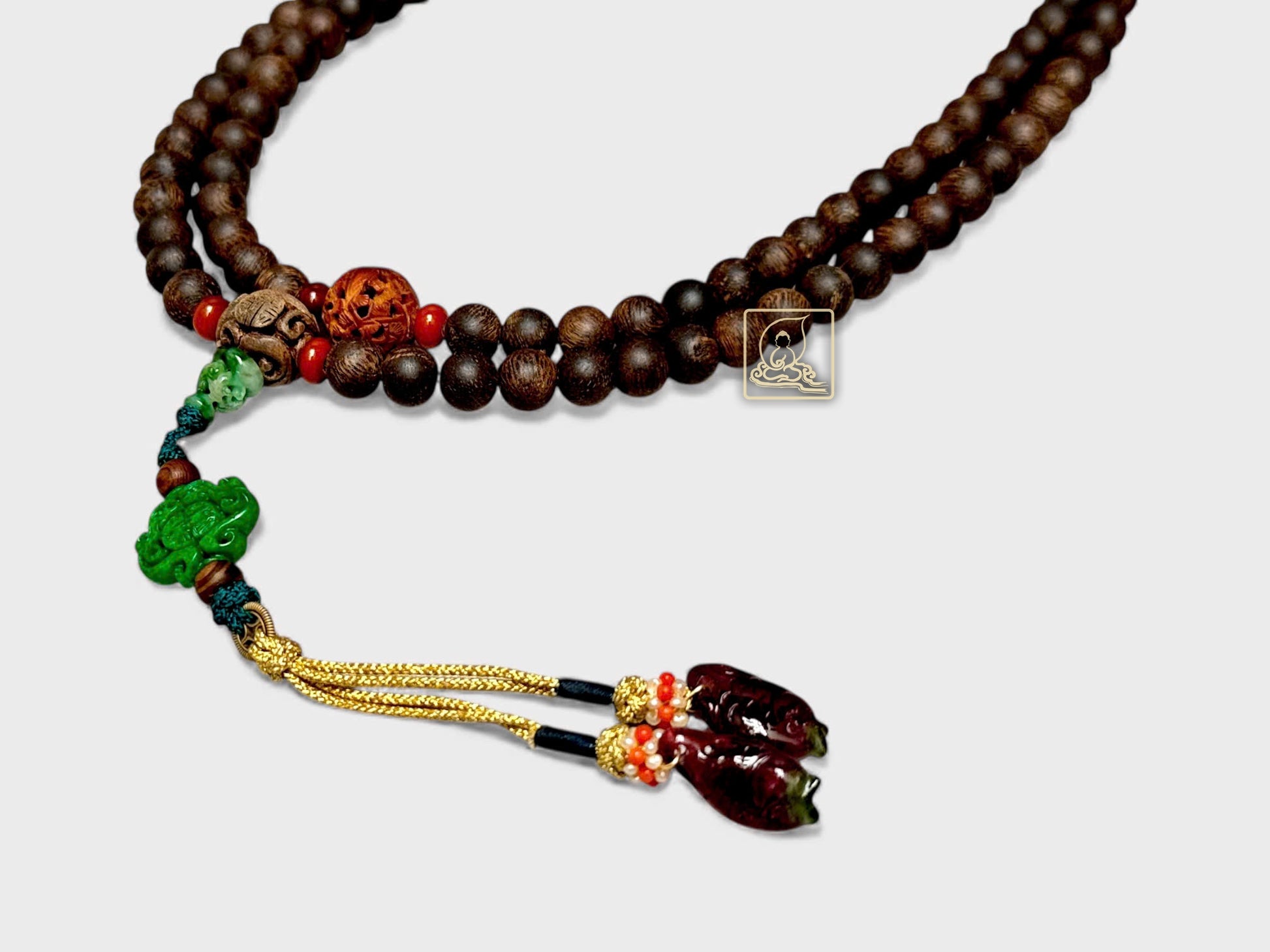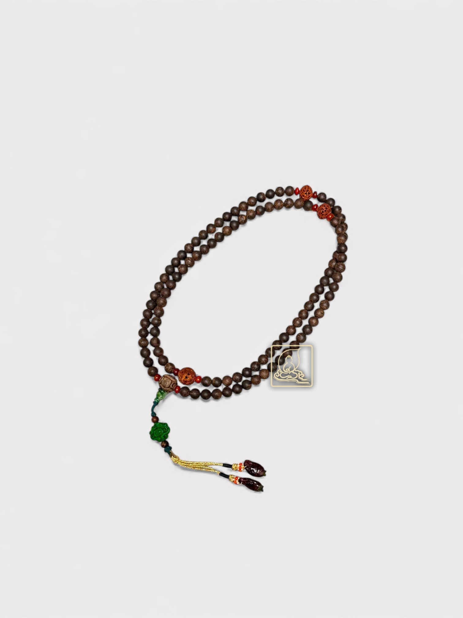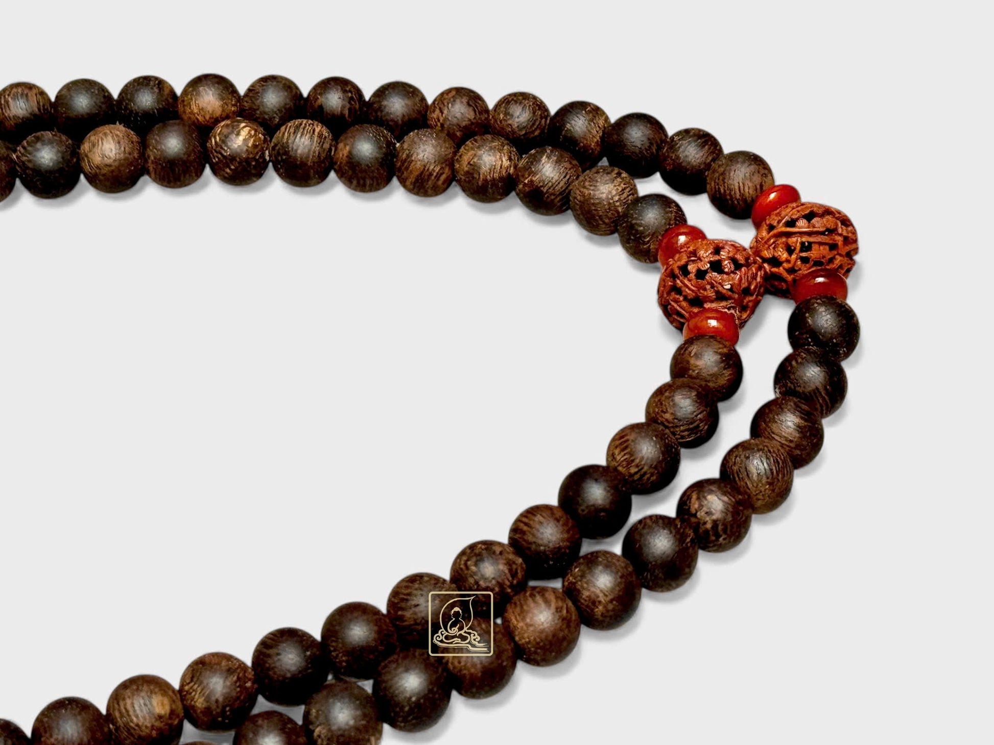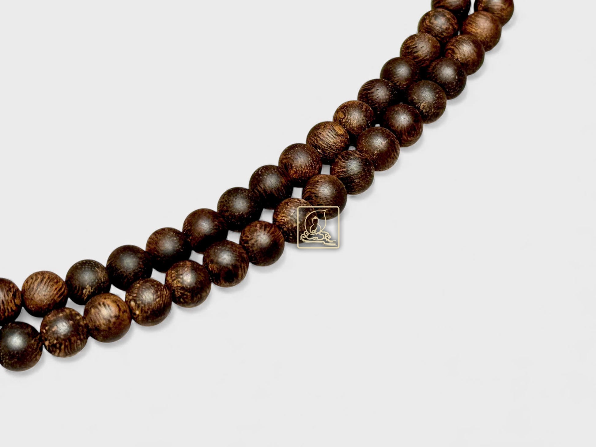 This 108-bead Vietnamese premium agarwood mala features 8mm round beads, perfectly blending natural beauty with spiritual significance. The pure agarwood emits a gentle, soothing aroma, promoting relaxation, energy balance, and mindfulness during practice.