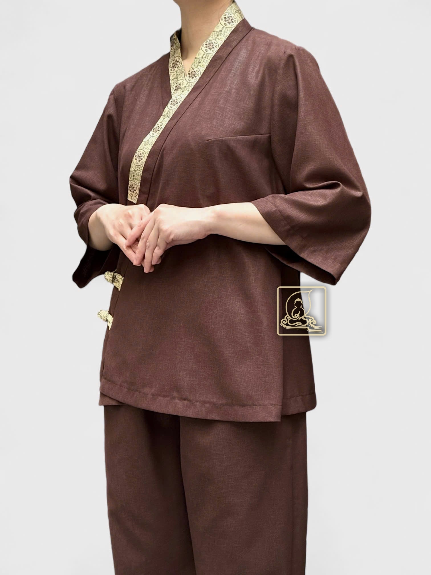 Its warm, calm tones reflect peace, respect, and devotion, bringing a sense of harmony to the wearer. With a clean and graceful design, this outfit is perfect for temple visits and Buddhist ceremonies.